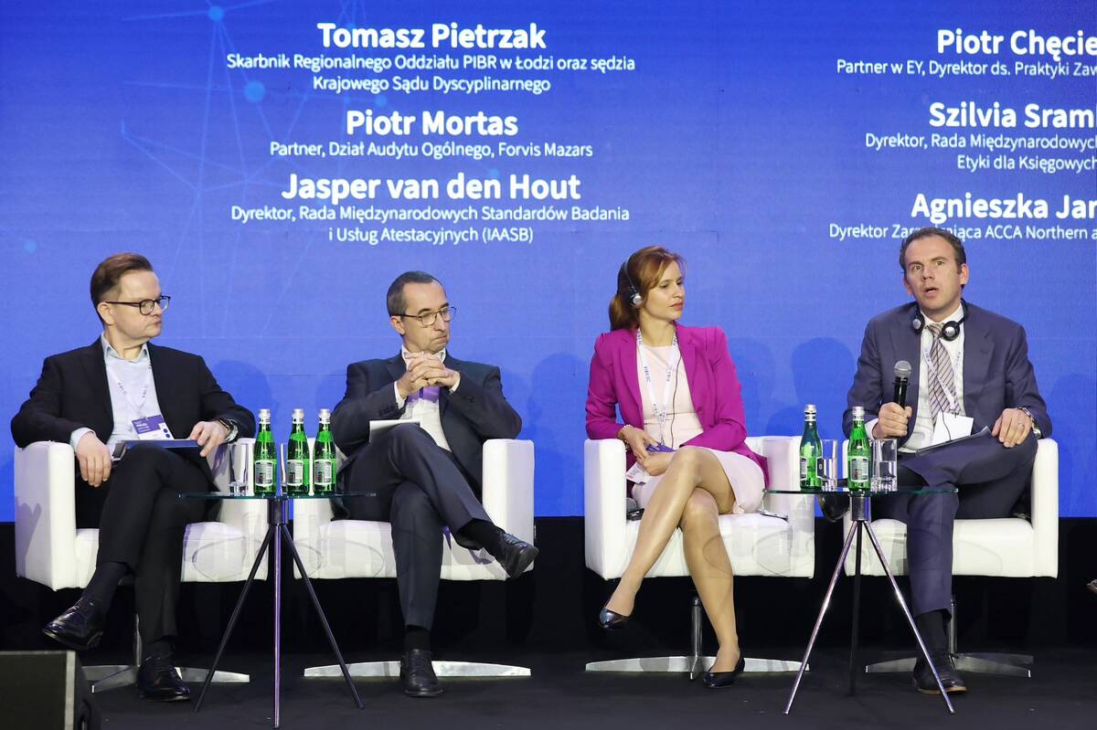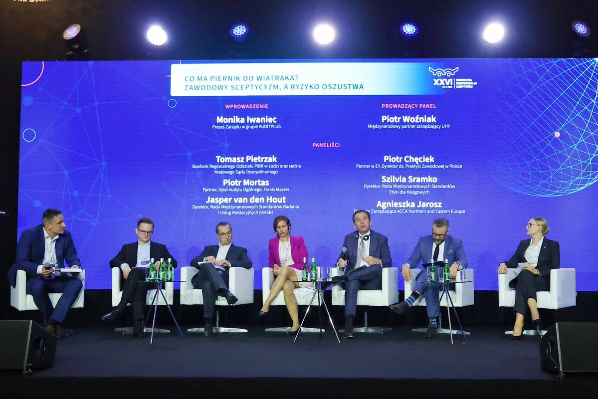 Dyskusję poprowadził Piotr Woźniak, Partner Zarządzający UHY, a w gronie panelistów zasiedli: Piotr Mortas (Forvis Mazars), Tomasz Pietrzak (PIBR / Krajowy Sąd Dyscyplinarny), Szilvia Sramko (IESBA), Jasper van den Hout (IAASB), Piotr Chęciek (EY) oraz Agnieszka Jarosz (ACCA).