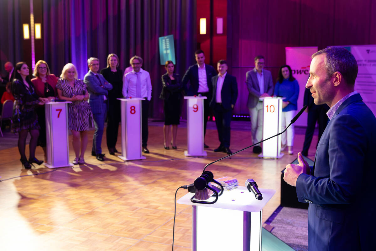 W dalszej części wieczoru pojawiła się też niespodzianka dla debiutantów konferencji – osób uczestniczących w DKA po raz pierwszy. Wśród nich wylosowano sześć osób (trzy obecne stacjonarnie i trzy uczestniczące online), które otrzymały vouchery na warsztaty w Centrum Edukacji PIBR – symboliczny gest powitania w środowisku biegłych rewidentów.