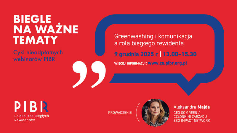 Zapraszamy na kolejny webinar PIBR z cyklu „Biegle na ważne tematy”, poświęcony tematyce związanej z ESG. Tematem szkolenia, które odbędzie się 9 grudnia w godz. 13:00 – 15:30 będzie „Greenwashing i komunikacja a rola biegłego rewidenta”. Rejestrację prowadzi Centrum Edukacji PIBR.